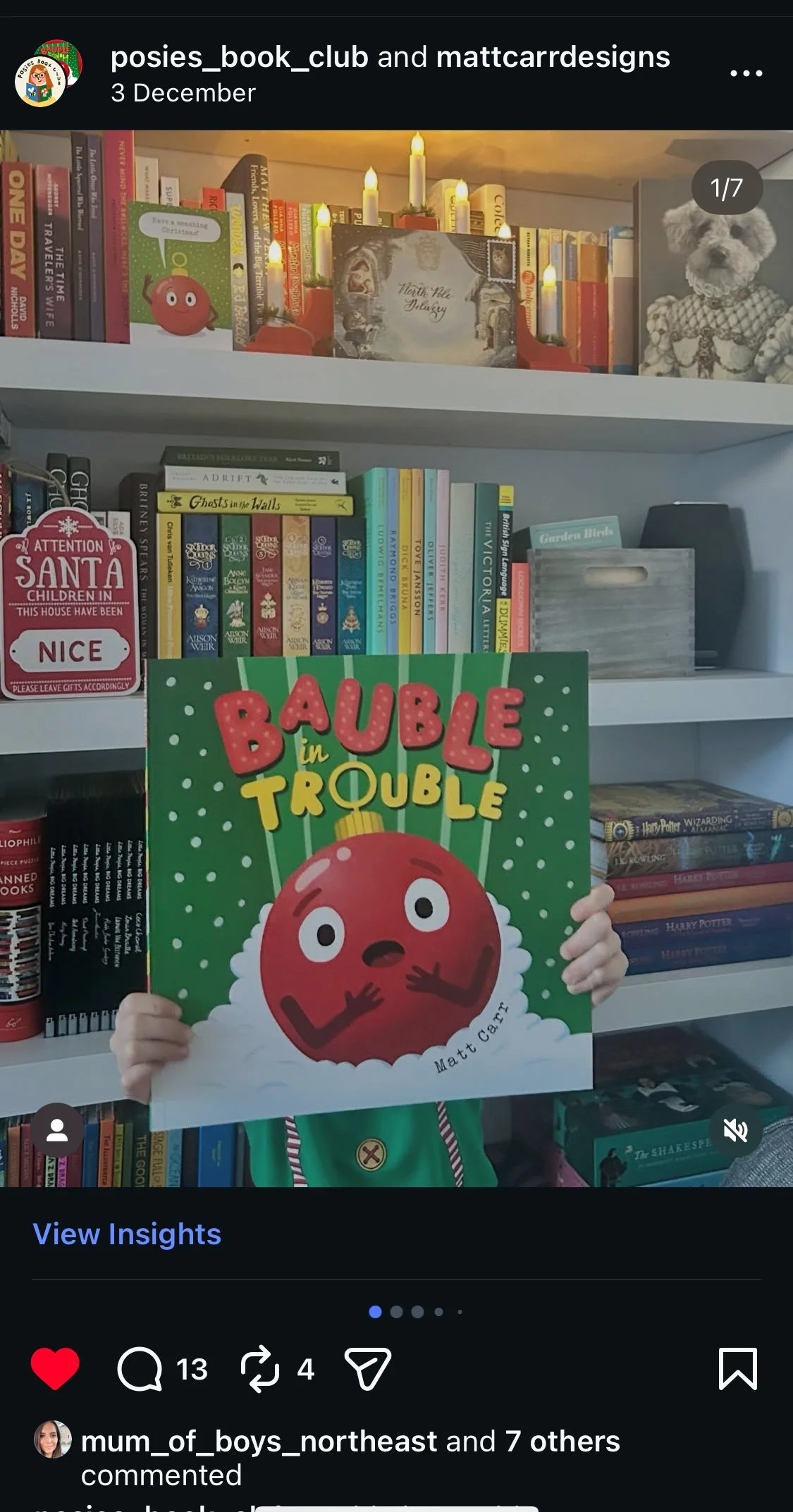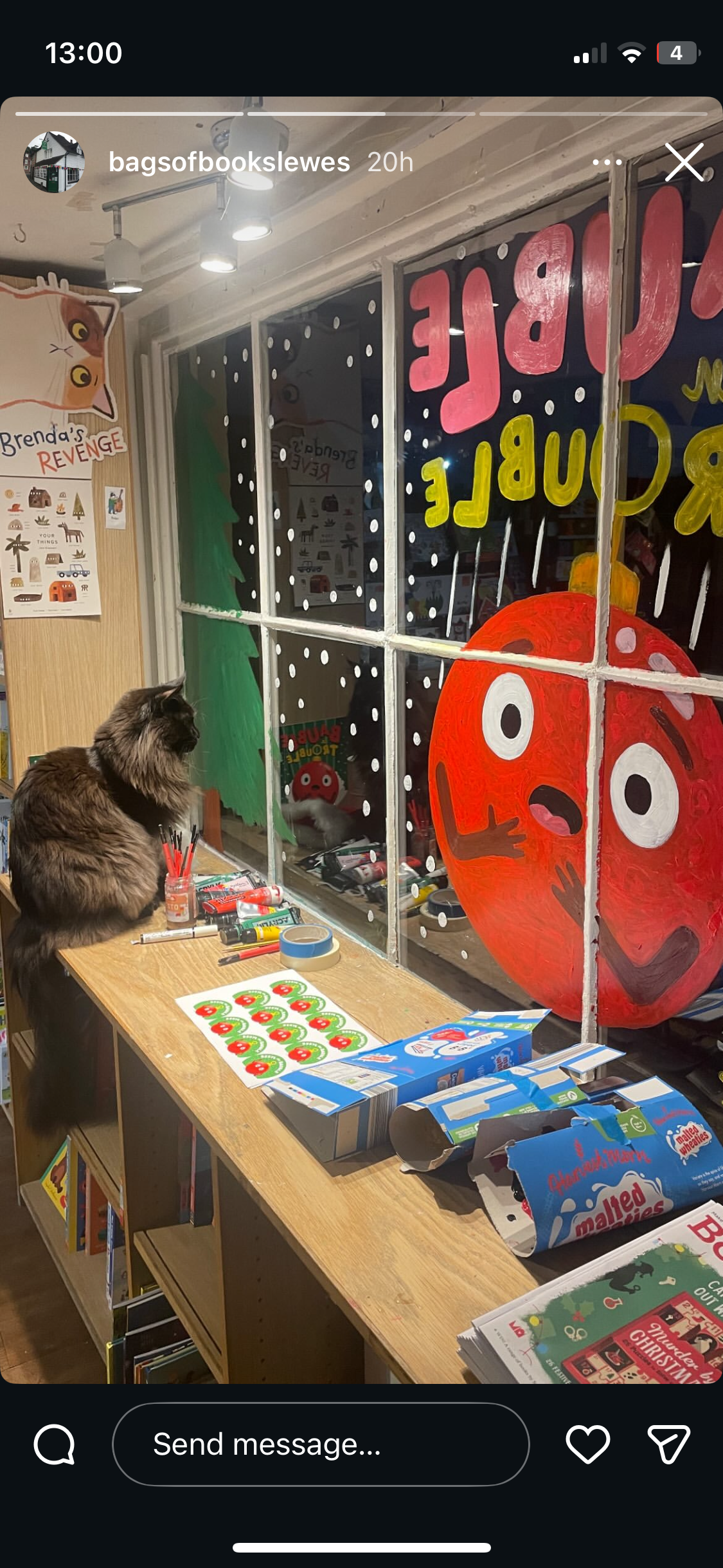The huge promotional juggernaut for Bauble In Trouble rolled into motion mid November. I did the window at the lovely Bags of Books in Lewes unfortunately it melted due to condensation so I had to do running repairs. Also there were some lovely reviews on Instagram and I also did a little event at Book Nook in Hove which surprisingly went well!